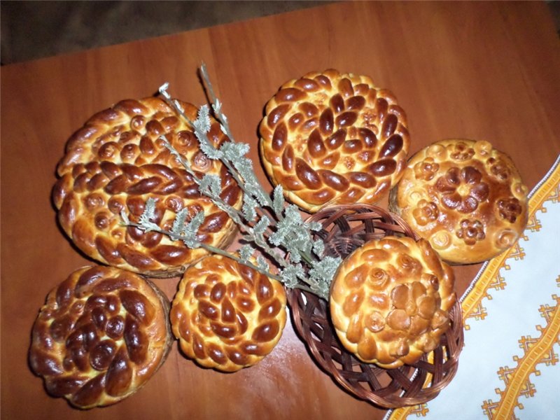 Дріжджі розчинити у 0,5 склянки молока. Борошно просіяти. Жовтки відділити від білків і розтерти з сіллю. Так пасочка буде жовтенькою, з тією ж метою яйця беру домашні. Як дріжджі гарно піднімуться, вилити їх у просіяне борошно, додати решту підігрітого молока і жентицю (невеликими порціями), жовтки, білки, горілку, цукор, наприкінці - вершкове масло. Гарно вимісити, доки тісто відставатиме від рук. Тісто поставити у тепле місце. Як гарно виросте (як правило, це займає 1,5-2 години), ще раз його вимісити і знову поставити щоб підходило. Після цього починати робити пасочки. Невеличкі кульки тіста розкласти у форми і, доки воно там підростає, починати тачати коси та усіляки прикраси. Прикраси і коси в "критичних" місцях "приклеяти" на жовток. Жовтком помастити перед самою посадкою у духовку.